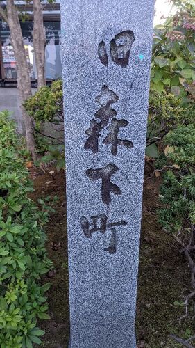 もりもとまち。 近くにはフシギオブジェが。 もっとじっくり見ておけばよかったです。 【藩政初期、森下村の郷士亀田大隅の子孫が 染工になって居住していたので この名がつけられた。】