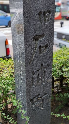 香林坊、東急スクエアの前、 こんなところにまちしるべが。 大通りに無いと思っているとあったりするから、 歩いていても気が抜けません。 いつもキョロキョロしてます。 【もと石川郡石浦庄下石浦村であったが 慶長年間 町地となりこの名がつけられた 城下…