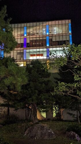 金沢駅地下広場のベンチに座って眺める中庭。 フォーラスの青いライトアップは、 いろいろな色に変化していました。 夏は暑くて座ってるのも苦しかったけど^^; いい季節になりましたね。 すぐに寒くなりそうですが…